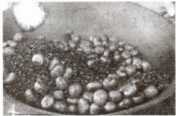 22. 下图是糖炒栗子的情景,炒栗子时要往锅里放一些沙子。据此回答: