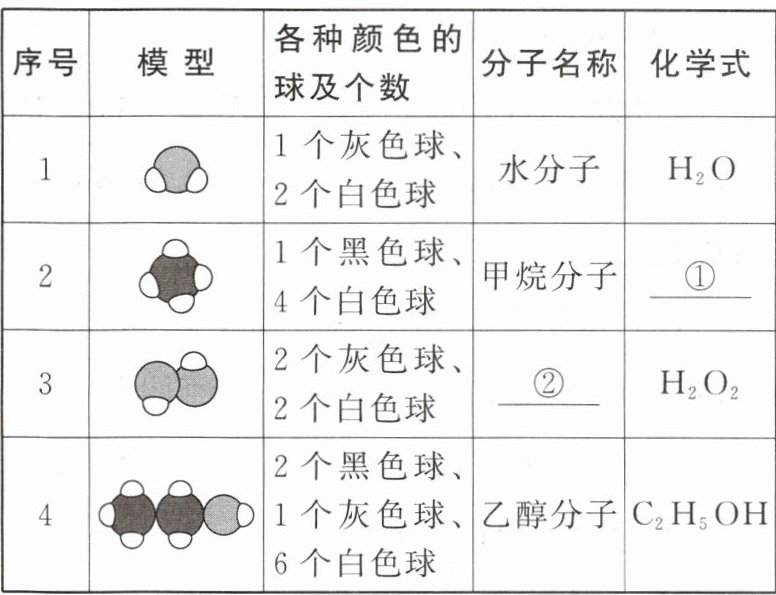 (1) 模型2的化学式①是______;模型3的分子名称②是______。