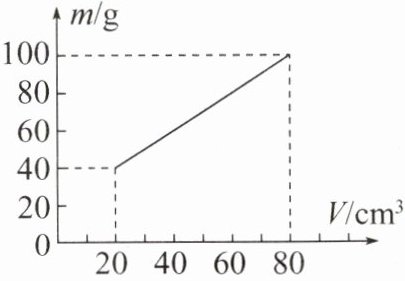 16. 在测量液体密度的实验中,小科利用天平和烧杯测量出液体和量杯的总质量 $m$ 及液体的体积 $V$,得到几组数据并绘出如图所示的图像,则下列说法正确的是()