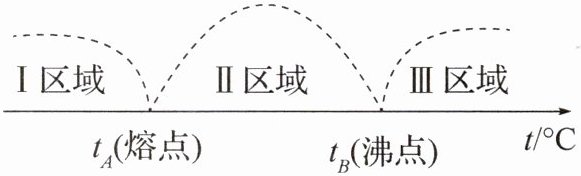 18. 如图所示,图中 $t_{A}$、$t_{B}$ 两点坐标的温度分别对应是某晶体物质的熔点和沸点,若该晶体物质某一时刻的温度 $t<t_{A}$,该晶体物质处于Ⅰ区域,是______(选填“固”“液”或“气”)态;若该晶体物质由Ⅲ区域的状态直接到Ⅰ区域状态时,该晶体物质发生______(填物态变化名称)现象。