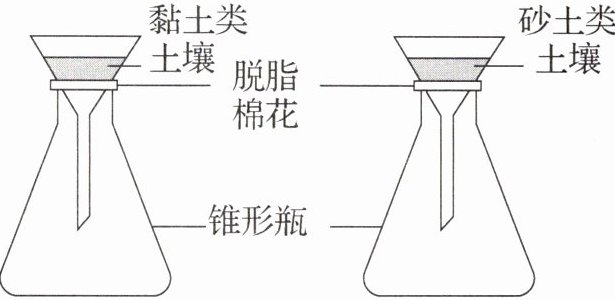 18. 给种植在不同土壤上的植物浇水,渗出的水量可能不同。如图是探究不同种类土壤渗水能力的实验,实验中不需要控制相同的是 ()