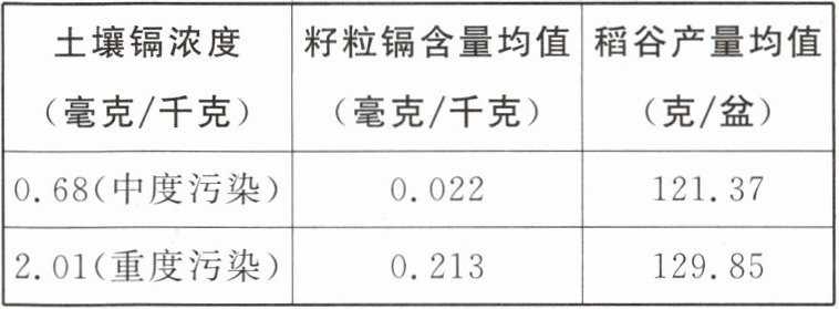 (2) 实验结果表明,土壤镉浓度增加会导致水稻籽粒中的镉含量____(选填“增加”或“减少”),稻谷产量____(选填“会”或“不会”)降低。