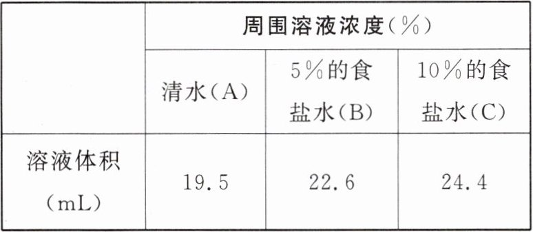 步骤一:分别取20mL清水和20mL不同浓度(5%、10%)的食盐水依次置于A、B、C三个烧杯。
