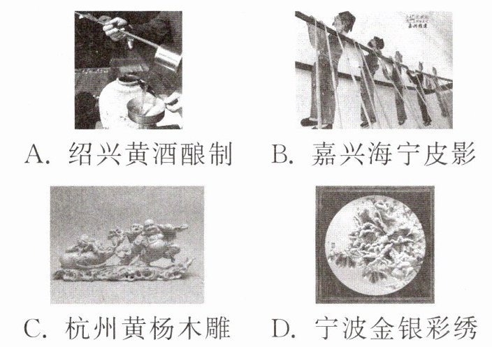 2. 近年来,我国大力弘扬中华优秀传统文化,体现了中华民族的“文化自信”,如图是浙江各地非物质文化遗产的代表,它们在制作过程中主要利用化学变化的是 ()