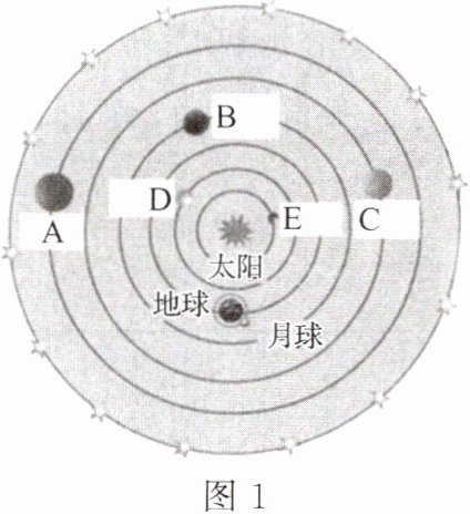 (2)图 1 为哥白尼“日心说”模型示意图。在该示意图中有着壮观光环的行星为______(填图中字母)。
