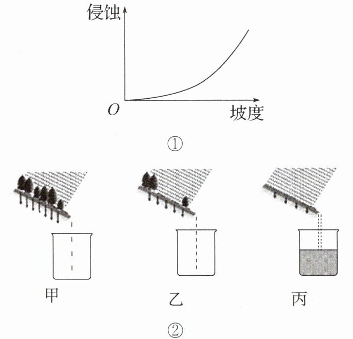 过程二:实验探究水土流失与植被的关系(如图②所示)。