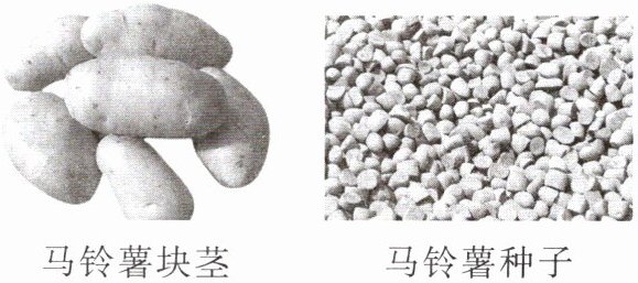 27. 搭乘神舟十四号飞船从天宫返回的两万粒马铃薯种子经过催芽,迎来首个种植季。如图为马铃薯块茎与种子的实物图。