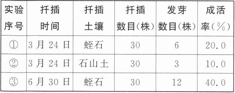 23. 以下是小科扦插天竺葵的实验记录,请你帮他补充完整。