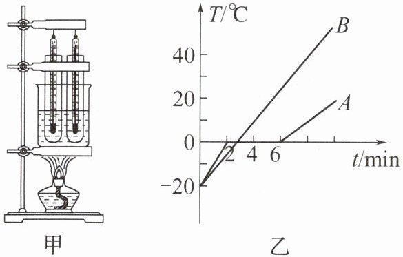 B. 图甲中两试管放在同一烧杯中加热,可以控制相同时间内冰和蜡烛吸收的热量相同
