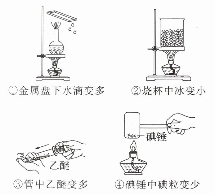 7. 教材中有许多有趣的演示实验。下列“变多、变少”的演示实验中,涉及物态变化放热的是()