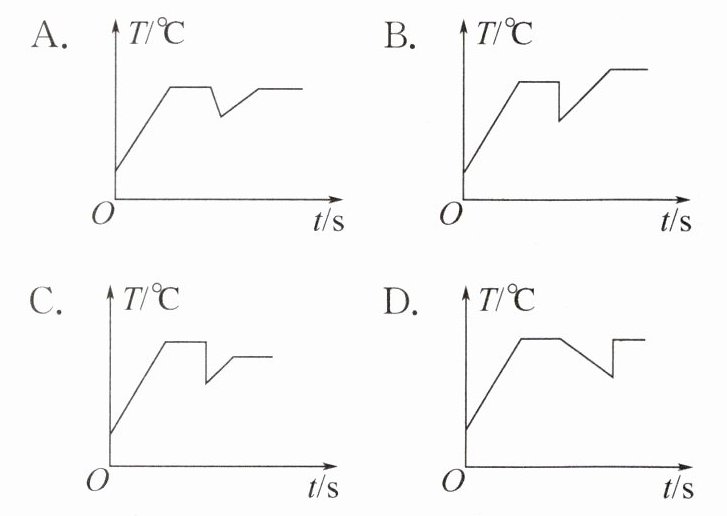 6. 星期天,小华在家烧水煮饺子。当水烧开准备下饺子时,妈妈提醒他锅里的水量少了点,于是小华又往锅里迅速加了一大碗水(水量比锅里少),用同样大的火直至将水再次烧开。下面能反映小华整个烧水过程中温度随时间变化的图像是()