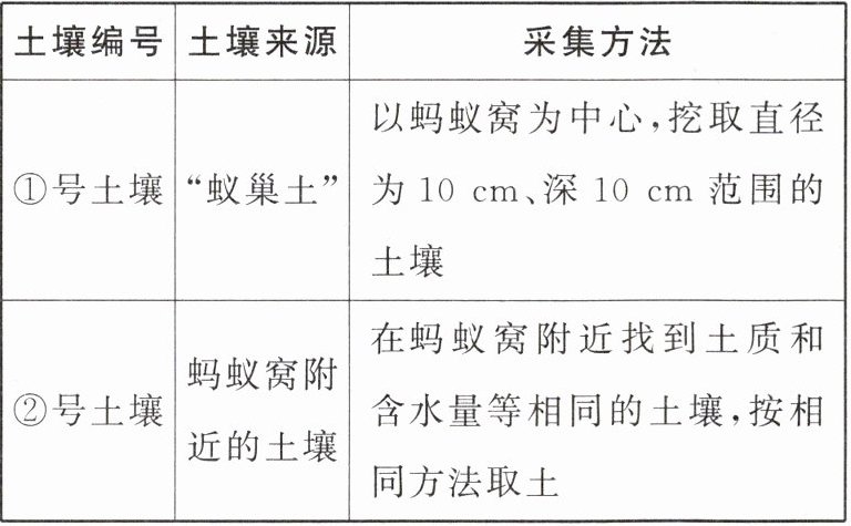 该实验设计体现了对照原则,①号土壤为实验组,②号土壤为对照组,用于对比探究蚁巢土的相关情况。