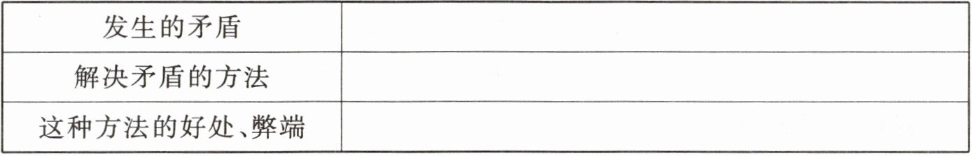(1)当你和朋友发生矛盾时,你会怎么做呢?从生活中选取事例填写下表。
