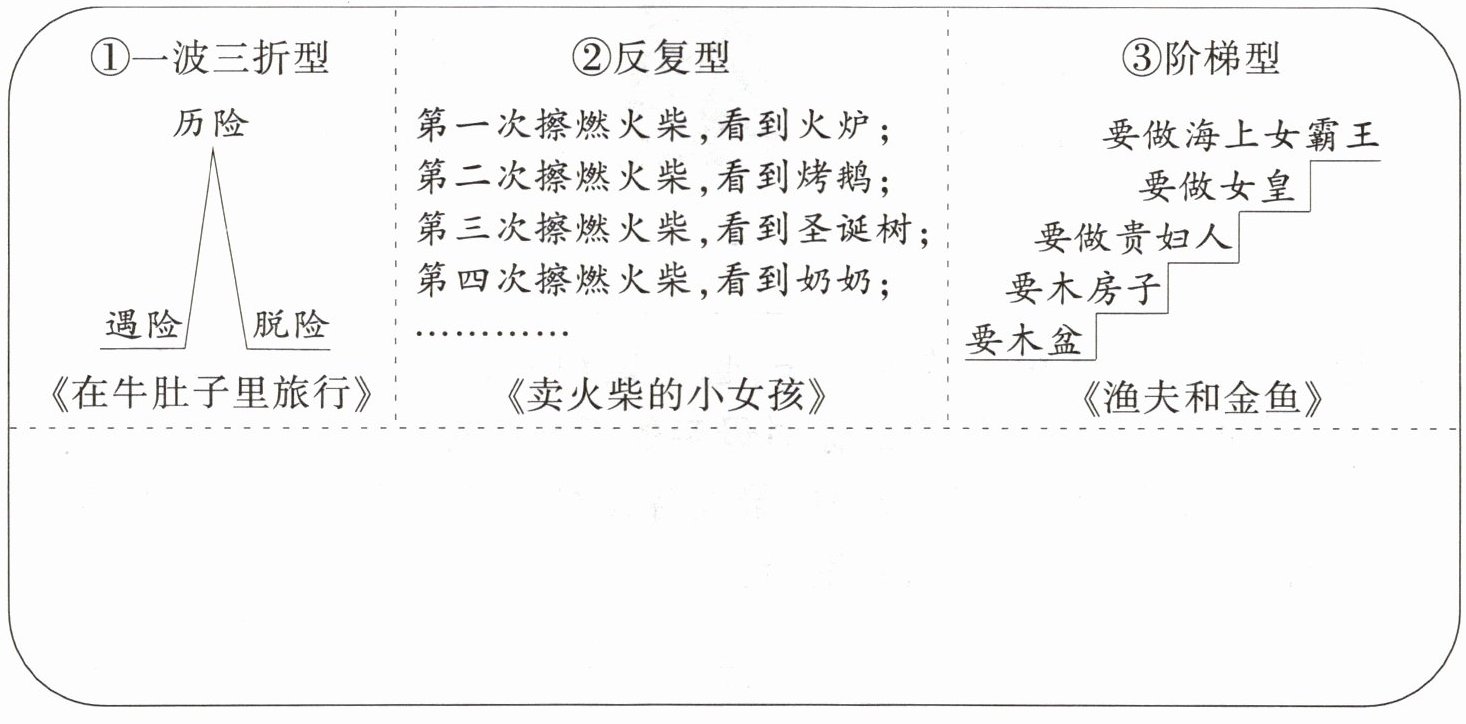 3 课文《宝葫芦的秘密》结尾写道:“要是我有那么一个葫芦,那……”想一想,接下来会发生怎样的故事。请参考下面三种形式的故事导图,选择其中一种,画一画你的故事导图。