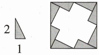 (2)西西在玩拼图游戏,她打算用右图中的直角三角形卡片贴满正方形底板。空白部分需要()张这样的卡片才能贴满。