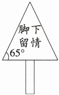 (1)西西发现小区的草坪上有一块等腰三角形的警示牌,如果它的一个底角是 $ 65 ^ { \circ } $,那么警示牌的顶角是多少度?