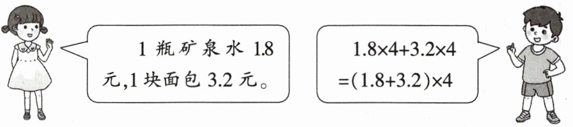 2 买4瓶矿泉水和4块面包共需多少元?大江计算时运用了()。