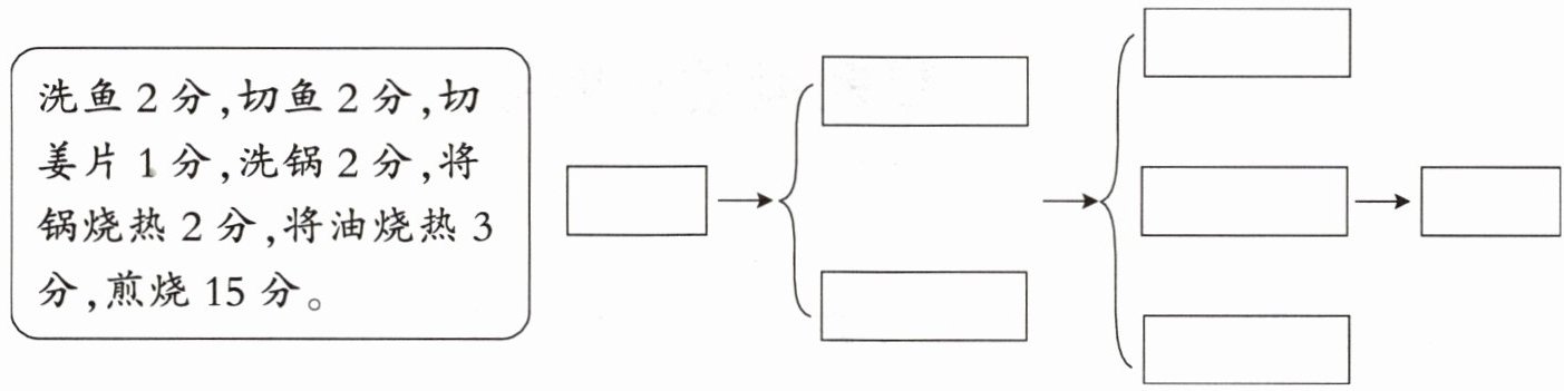 (2)下面是妈妈做鱼的七道工序,请你填写在右图中。