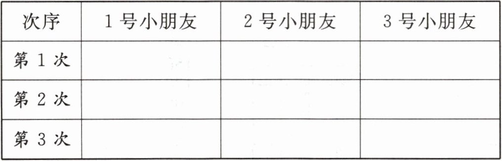 |次序|1号小朋友|2号小朋友|3号小朋友|