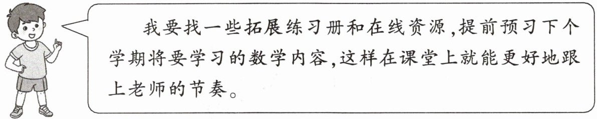 我要找一些拓展练习册和在线资源,提前预习下个学期将要学习的数学内容,这样在课堂上就能更好地跟上老师的节奏。
