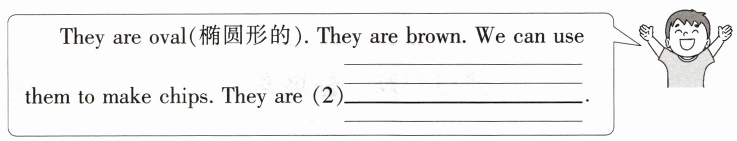 They are oval(椭圆形的). They are brown. We can use them to make chips. They are (2)