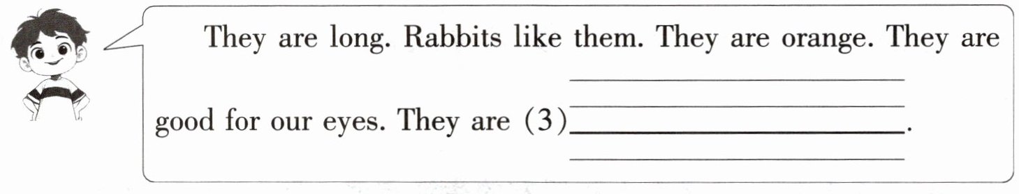 They are long. Rabbits like them. They are orange. They are good for our eyes. They are (3)______.