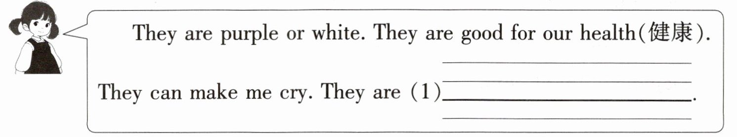 They are purple or white. They are good for our health(健康). They can make me cry. They are (1)