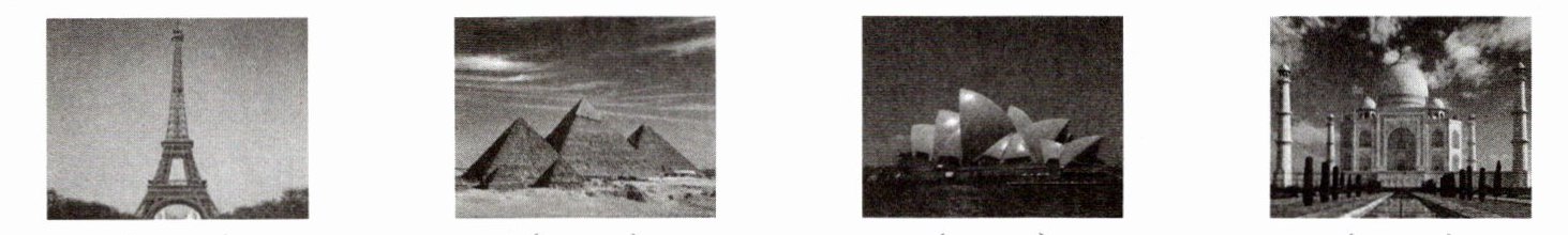 江找到了许多世界名胜的图片,你认识它们吗?选一选,填一填。() () () ()