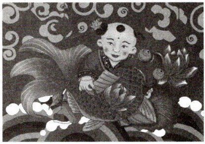谐音不仅体现在民间歌谣中,而且广泛运用于人们的日常生活中。比如,民间以福为吉,将福视作家庭或个人追求的目标,所以,每逢过年,家家户户都会在大门上贴“福”字。有时还故意将“福”字倒过来贴,取“福到了”的口彩。这里的“到”与“倒”就是谐音。再如,在民间年画中,鱼是最流行的题材之一,年画上一般是小胖娃娃双手抱着一条大鱼,而且有莲池、莲花等作为背景。以“鱼”谐“余”,以“莲”谐“连”,这幅画的主题是“连年有余”,所表达的意思就是希望每年的日子都能过得富足、富余。