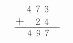 $\begin{array}{r}473 \\ +24 \\ \hline 497\end{array}$