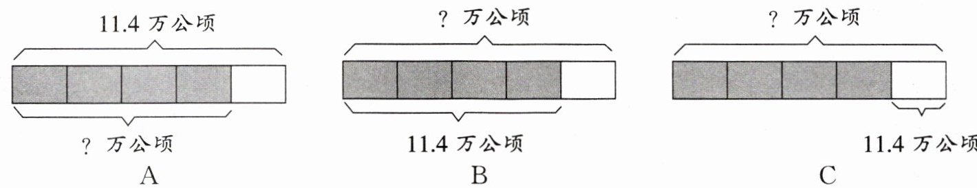 2 井冈山森林面积达11.4万公顷,约占井冈山市面积的$\frac {4}{5}$。求井冈山市的面积,画图正确的是()。