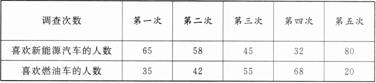 (2)在这五次调查中,平均每次调查有多少人喜欢新能源汽车?燃油车呢?