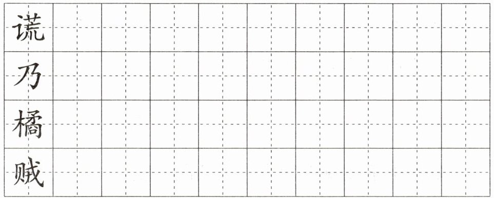 答案: 按照上述对每个字中“折”的写法要点,认真练习书写“谎、乃、橘、贼”这几个字,体会不同“折”在具体汉字中的书写规范和美感。