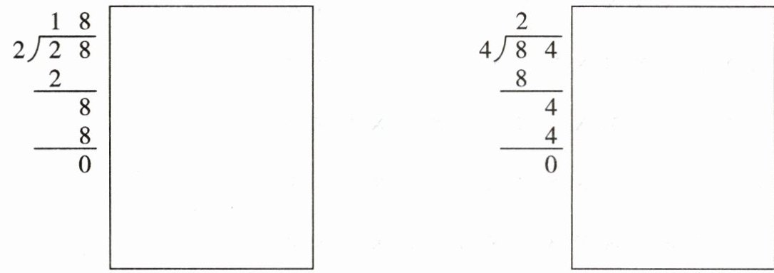 2. (★★☆☆☆)下面的算式对吗?把不对的改正过来,写在竖式右边的方框里。