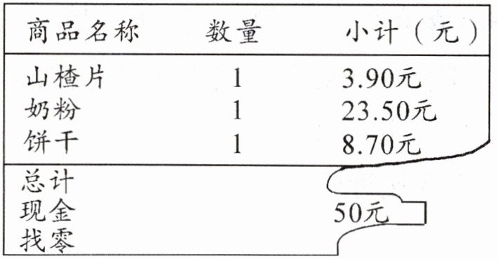 7. (★★★☆☆)下面是一张购物小票,有部分被撕掉了,请你想办法恢复原状。