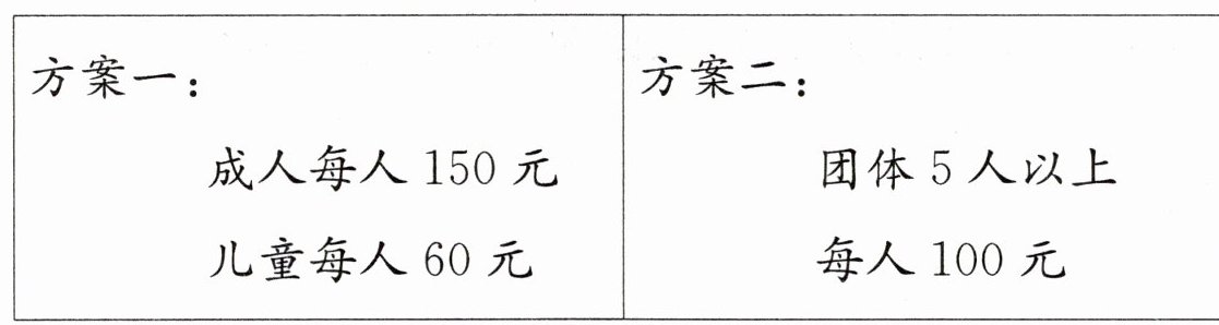 7. (★★★☆☆)旅行社推出“森林公园一日游”的两种出游价格方案。