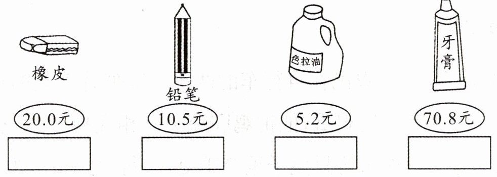 橡皮$2.00$元;铅笔$1.05$元;色拉油$52.0$元;牙膏$7.08$元。