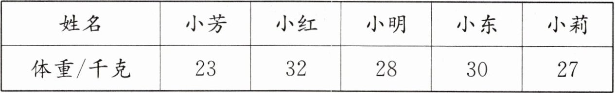 5.(★★★☆☆)下表中5名同学的平均体重是多少千克?