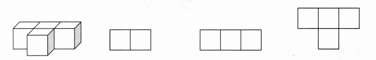 4. (★★☆☆☆)填一填,找出从正面、上面、左面看到的形状。