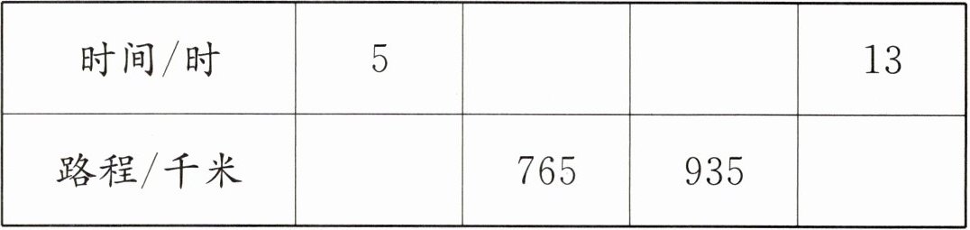 6. (★★★☆☆)一列火车 6 小时行了 510 千米,根据这一数据填写下表: