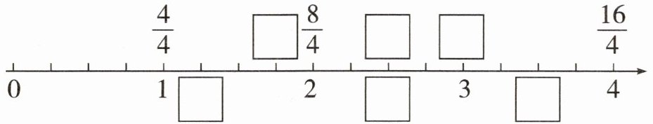 4. (★★☆☆☆)在直线上面的$\square$里填上适当的假分数,直线下面的$\square$里填上适当的带分数。