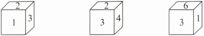 下图是标有1,2,3,4,5,6六个数字的正方体的三种不同摆法(忽略数字朝向),问三个正方体朝左那一面数字之和是多少?