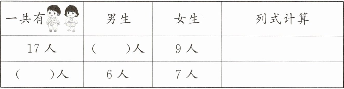 - 第四行:$8$,$17 - 9 = 8$(人)。