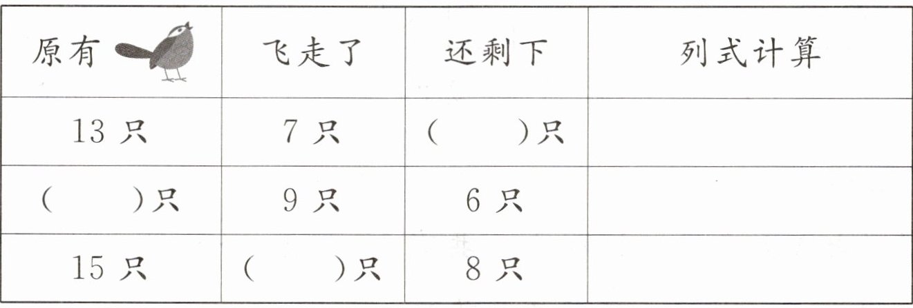 答案: - 第一行:$6$,$13 - 7 = 6$(只)。