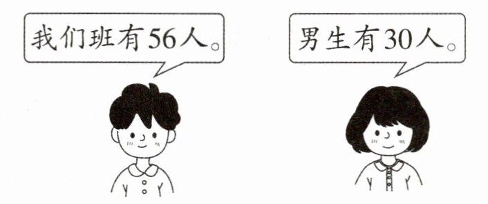 解:已知班级总人数为$56$人,男生有$30$人,要求女生人数,用班级总人数减去男生人数即可。