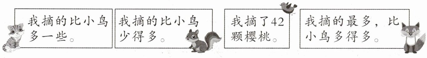 (1) 小猫、小松鼠、小狐狸分别摘了多少颗樱桃?用“☆”代表小猫,用“△”代表小松鼠,用“○”代表小狐狸,在下面填一填。