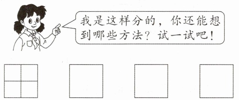 7.(★★★★☆)照样子,试着画一画,把正方形分成四个形状、大小完全相同的图形。