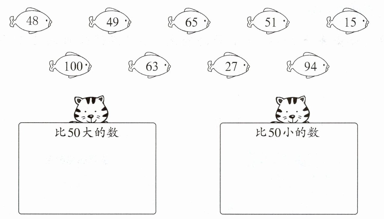 比$50$小的数:$48$、$49$、$15$、$27$。