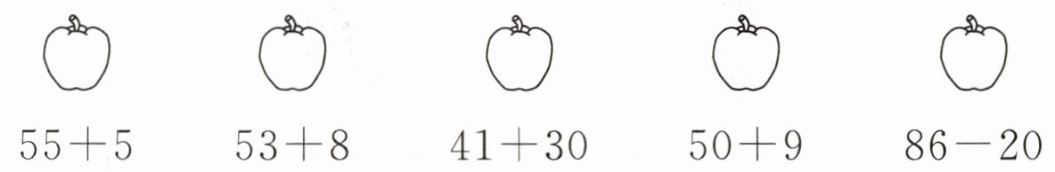 把$53 + 8$、$41 + 30$、$86 - 20$对应的苹果涂上颜色。