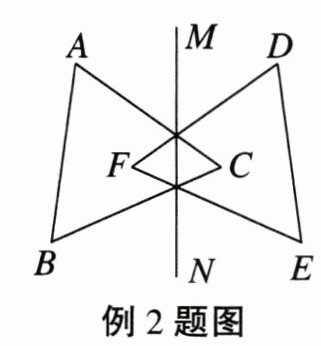 例2 如图,$\triangle ABC$与$\triangle DEF$关于直线$MN$对称。